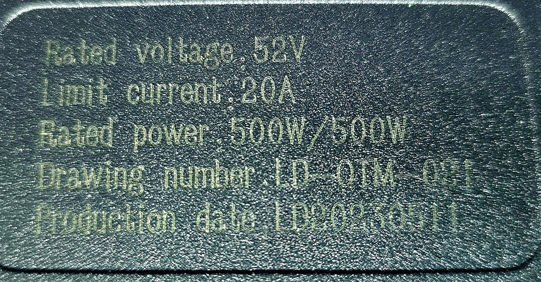 Controller 500W 52V Xi Hexagonal Motor Plug