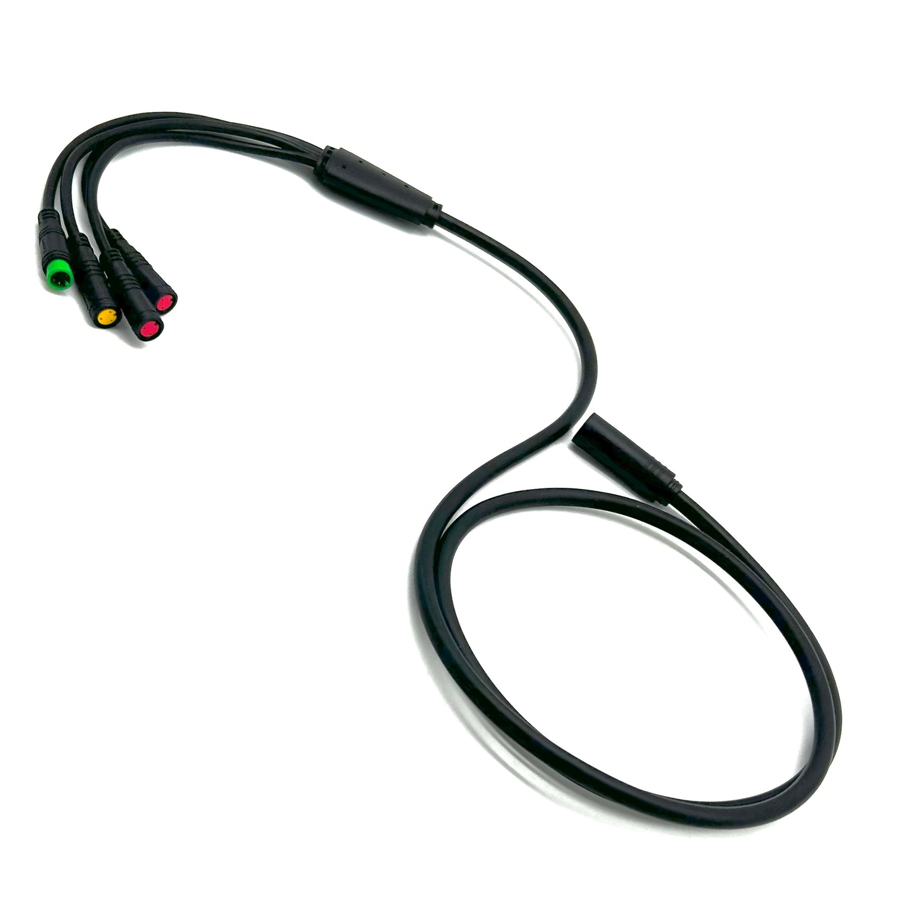 This electric bike wiring harness serves as a connector and splitter, linking the controller to the other electrical modules on your bike. Employs a Z812AG 8-pin plug as well as two female 2-pin HIGO connectors, one female 3-pin HIGO connector, and one male 5-pin HIGO connector.