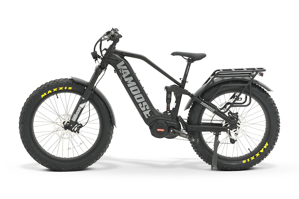 NEW for 2024, the Vamoose HONDO MID - SM is a cut above the rest - in a smaller frame! With top-tier components including Tektro Dorado quad piston brakes, SRAM X5 9-speed derailleur, RockShox rear suspension, and air front suspension, as well as distance d 52V 20Ah battery with the dual-battery option, this cycle is a high-performing beast.istance-leading