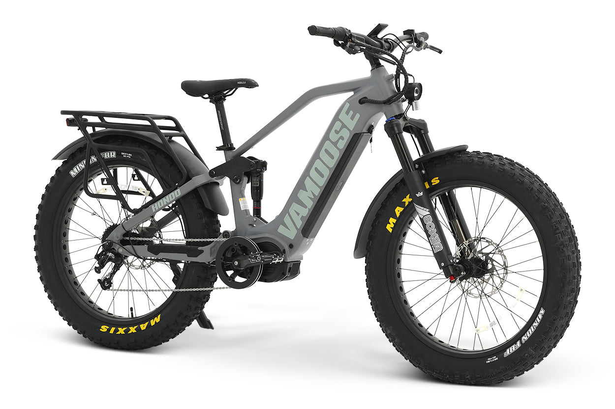 NEW for 2024, the Vamoose HONDO MID - SM is a cut above the rest - in a smaller frame! With top-tier components including Tektro Dorado quad piston brakes, SRAM X5 9-speed derailleur, RockShox rear suspension, and air front suspension, as well as distance d 52V 20Ah battery with the dual-battery option, this cycle is a high-performing beast.istance-leading