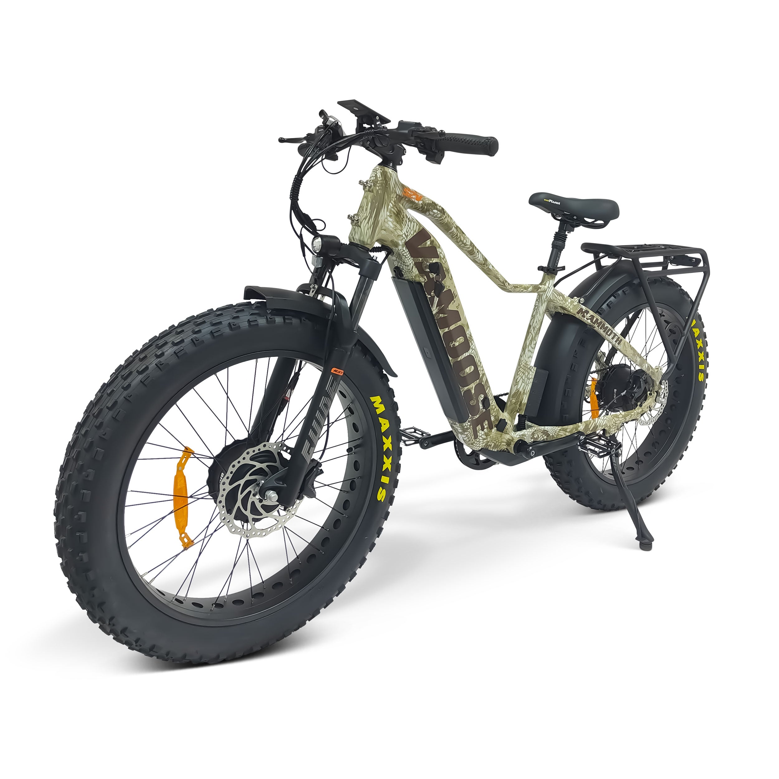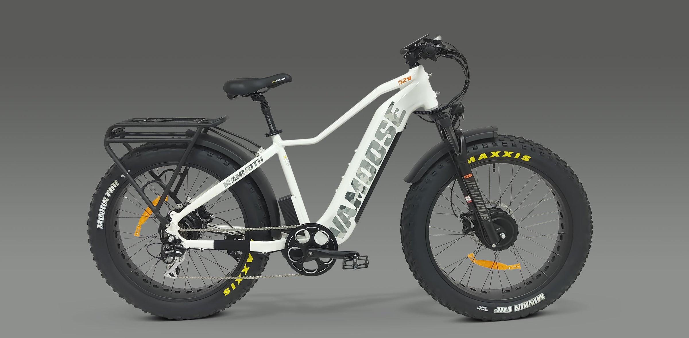 This Vamoose Super Mammoth AWD e-bike comes with two 52V 750W motors (front and rear) providing exceptional power and torque for climbing hills or crushing fresh powder! By adding a torque sensor to the 2022 models, the Super Mammoth improves both precision and control. An impressive machine, the Super Mammoth comes standard with a truly gigantic 52V 20Ah battery producing an incredible 1040 Watt-hours of performance - a range of +84km! Even better, you can add an additional 52V 15Ah battery to take you even further (1850 watt hours and 150 km)!