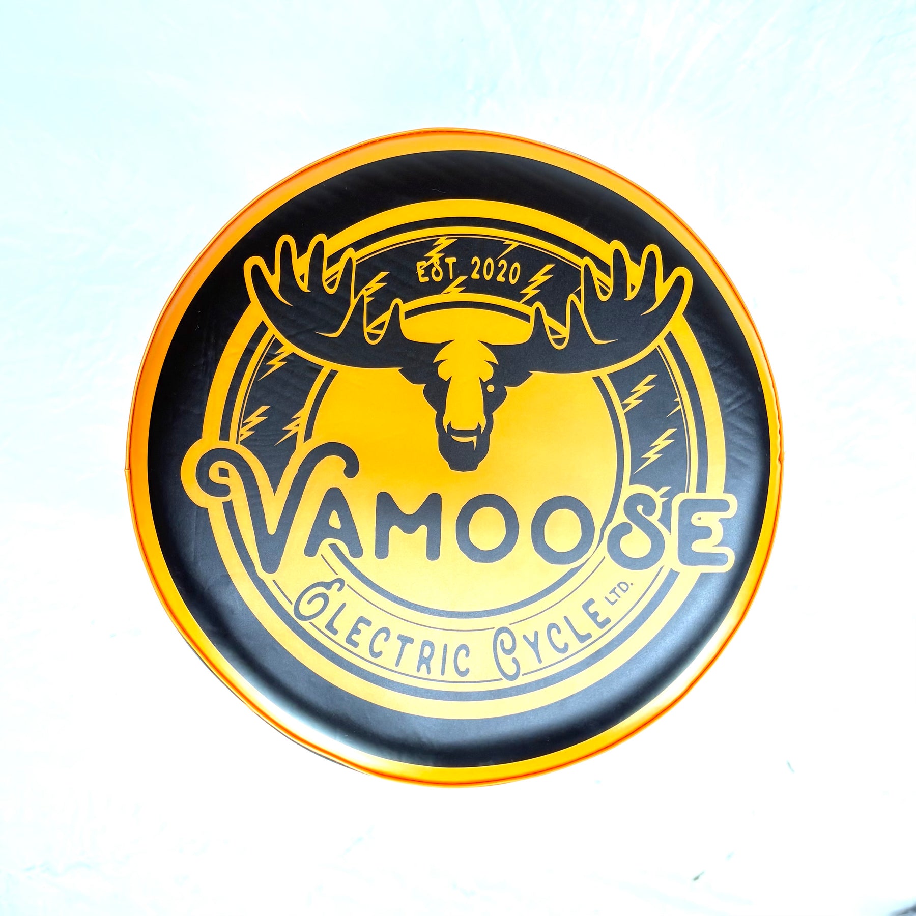 The Vamoose Bar Stool combines classic vintage design with durable craftsmanship. Powder coated in matte black, with a graphic vinyl cover, swivel top and dual support rings, the Vamoose Bar Stool make an ideal addition to any shop.